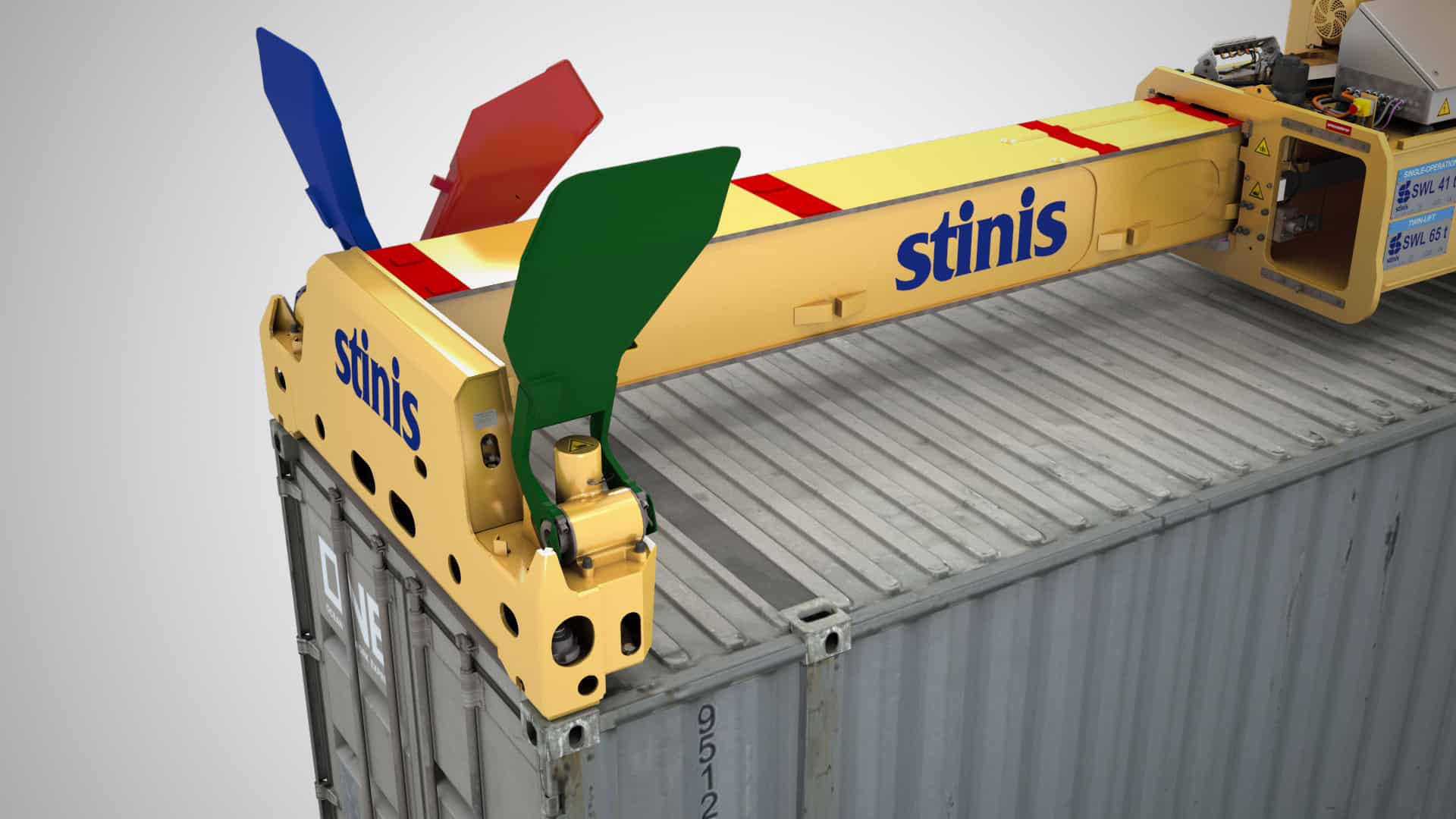It takes very little time and effort to connect the double pin set-up of a Stinis spreader to the crane hook. The double pin configuration also stabilizes the spreader for containers or other cargo.