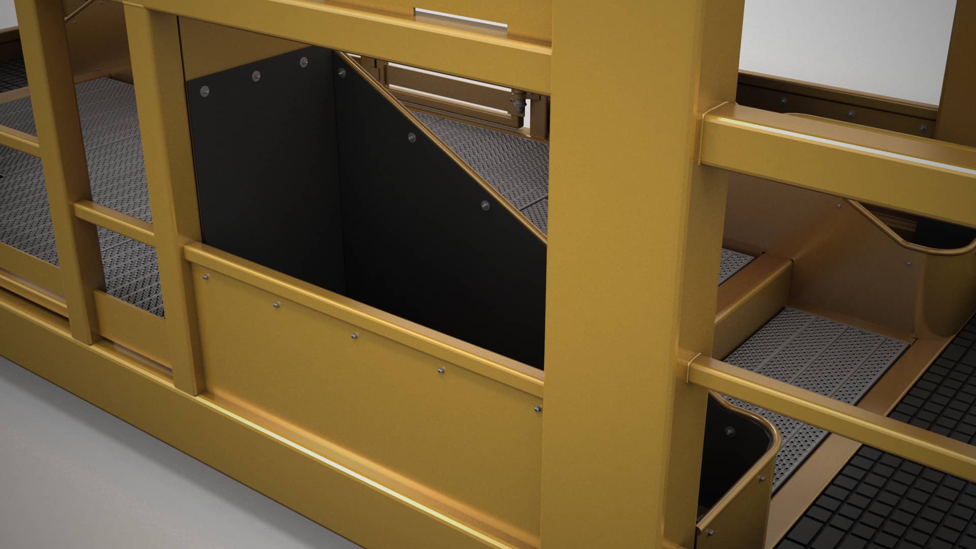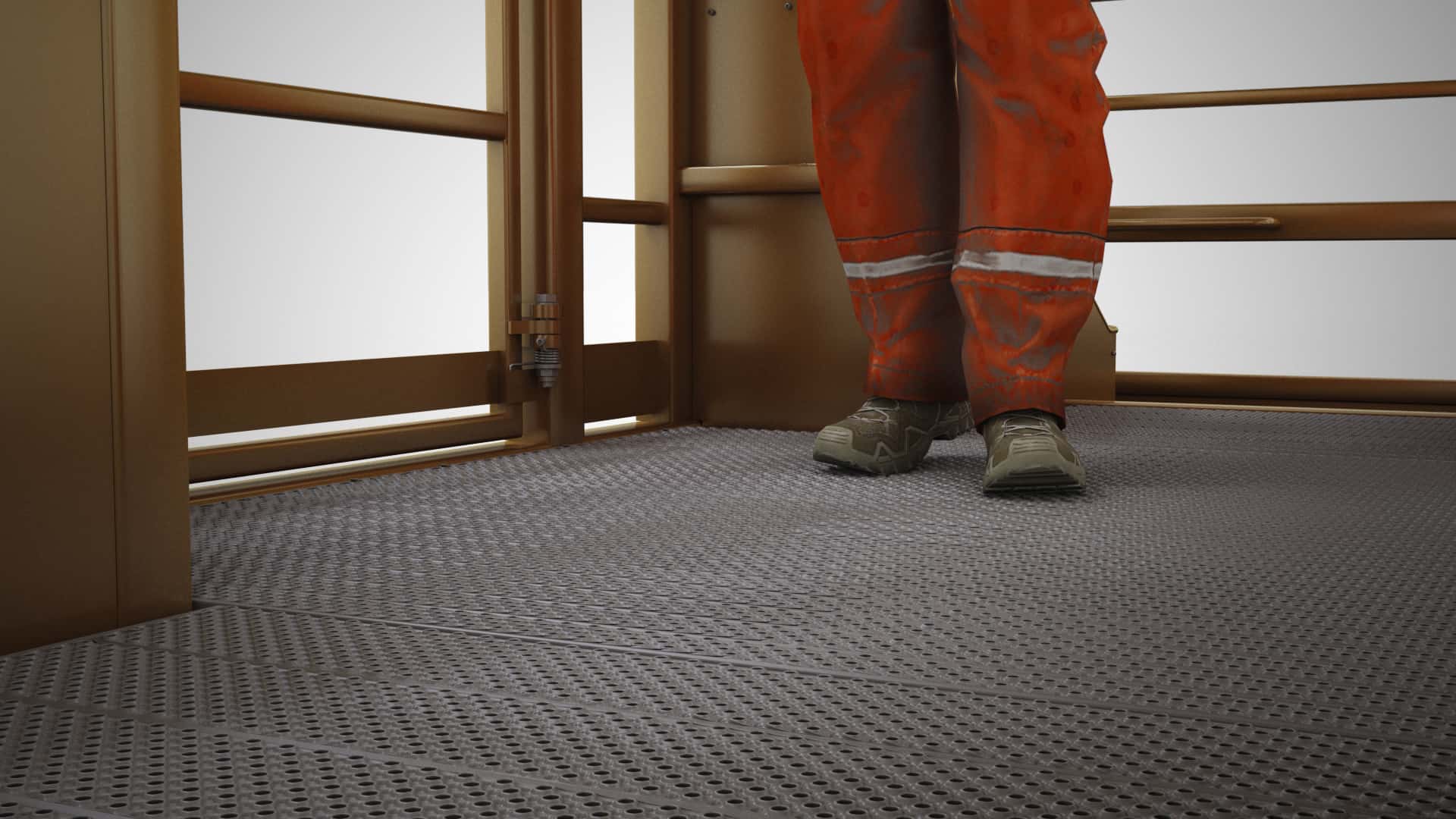 Anti Slip floors are a standard in the cage for workers to not slip while operating.